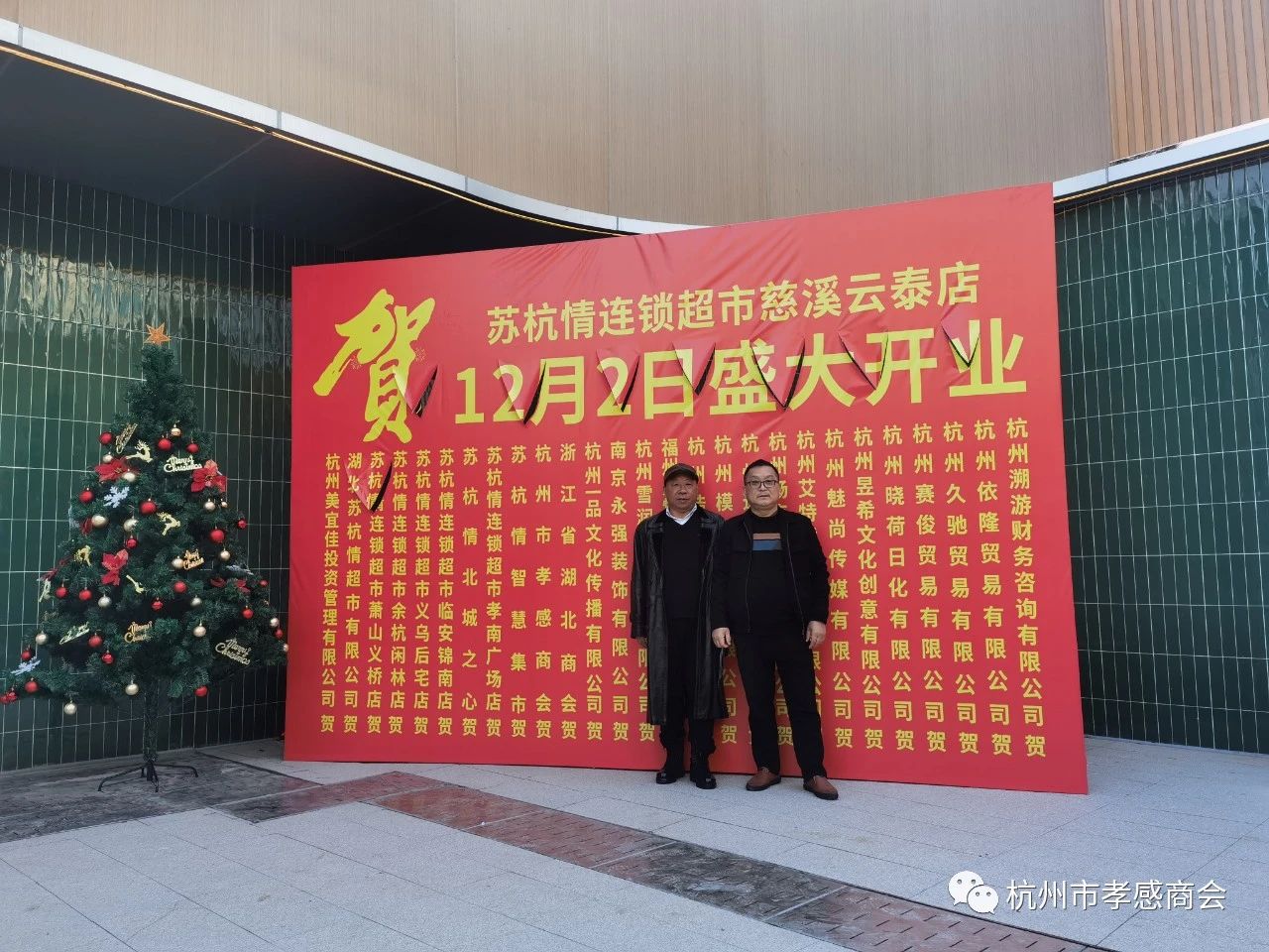 杭州市孝感商会执行会长、杭州美宜佳投资管理有限公司董事长翁端红投资的“苏杭情连锁超市.云泰店”在慈溪市新河坊PARK盛大开业,这是翁端红先生逆势而上,进军城市高端消费生活圈,打造高端品质生活的又一力作。杭州市孝感商会执行秘书长施舍、常务理事王新良受商会长吴慧平及全体同仁委托,亲临祝贺!